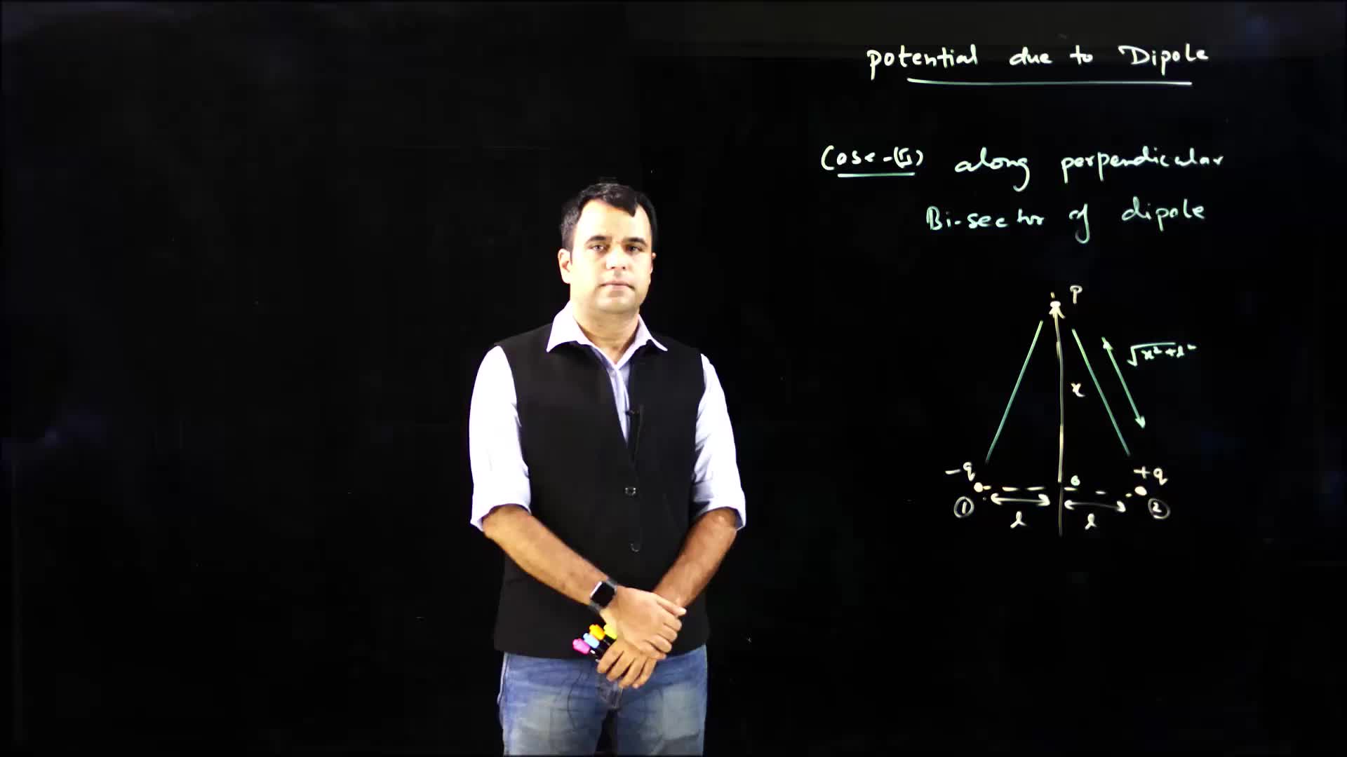 The video explains the calculation of the potential due to a dipole along its perpendicular bisector, using equations and derivations to show that the potential along the perpendicular bisector of the dipole is zero.