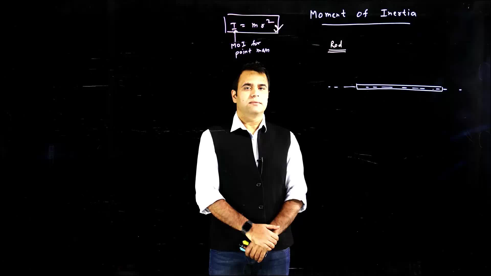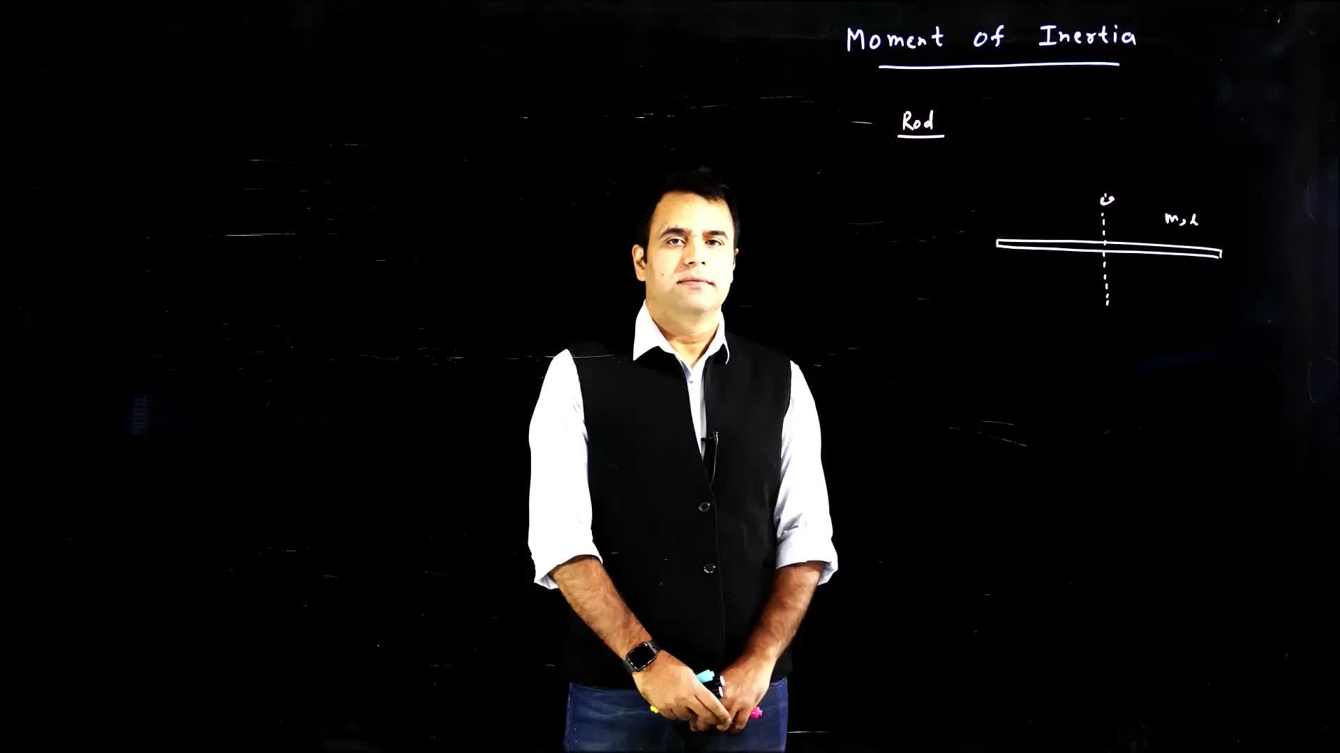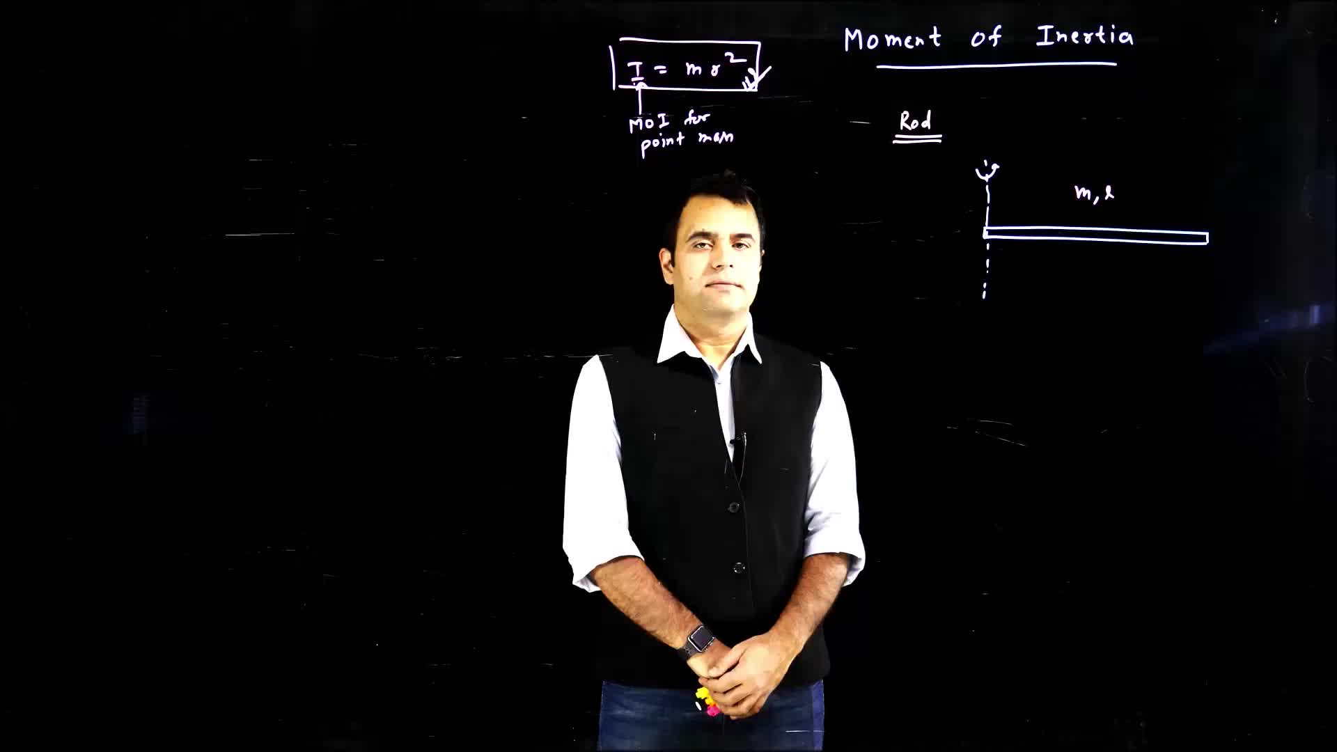 Lecture on the calculation of moment of inertia for a rod with mass M and length L, using point elements and integration.
