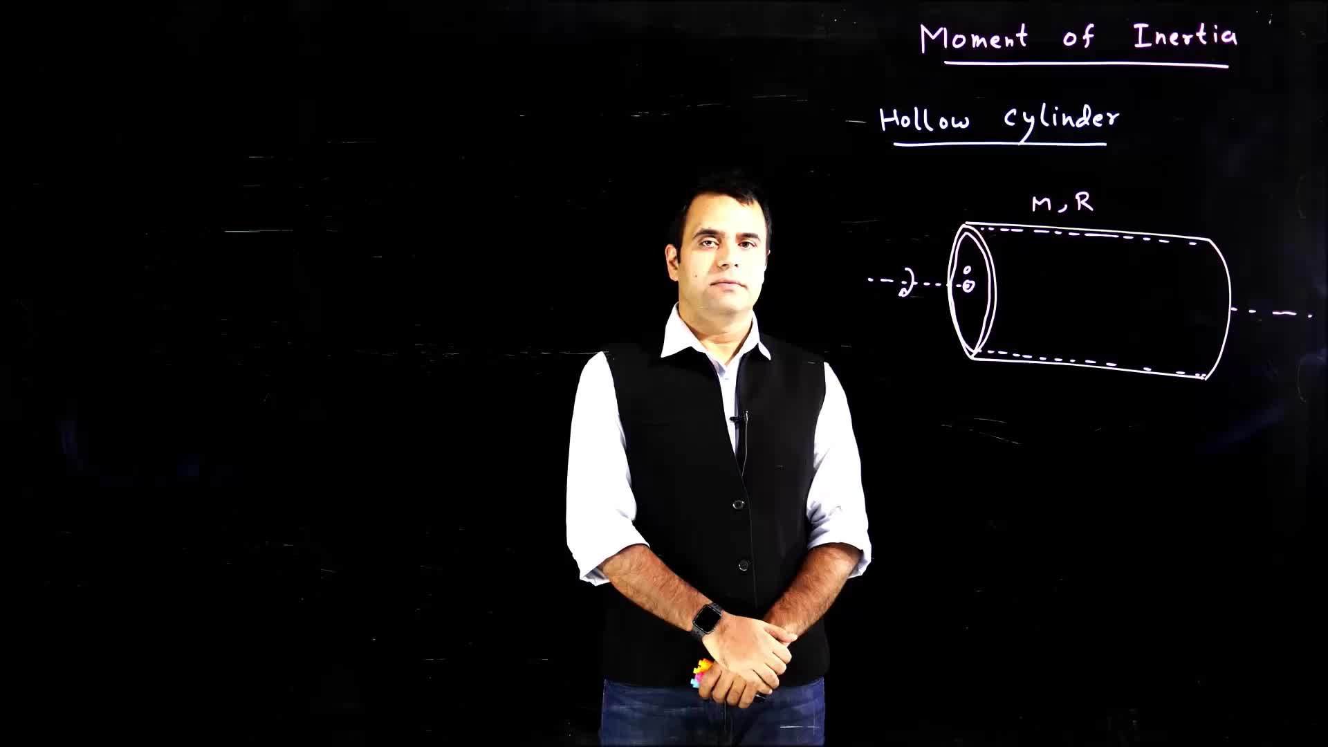 This video explains the process of calculating the moment of inertia for a hollow cylinder. It covers the method of cutting the cylinder into elements, calculating the mass and moment of inertia for each element, and integrating to find the moment of inertia for the entire cylinder.