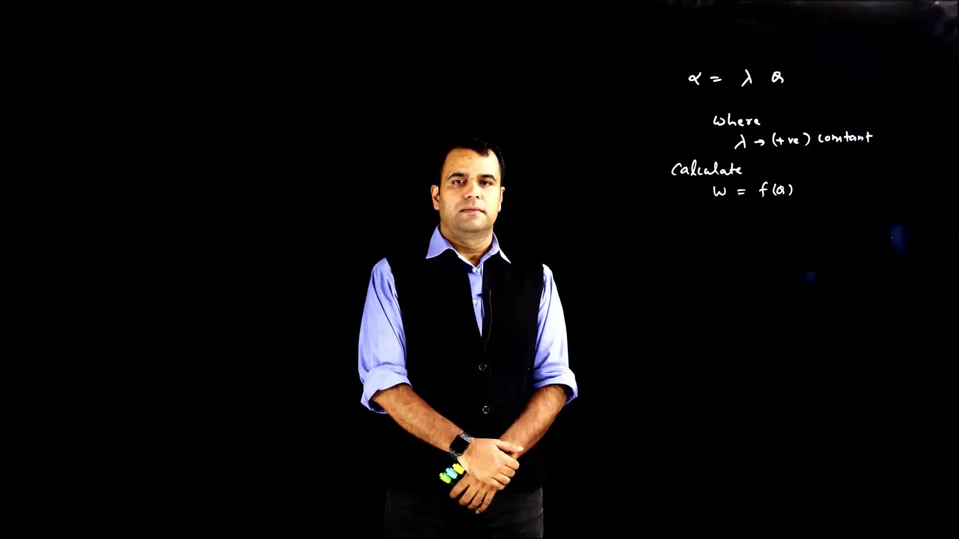 The video explains how to solve for the angular velocity as a function of theta in an equation involving angular acceleration and angle. It demonstrates the use of differential kinematical equations and the process of integrating to find the solution.